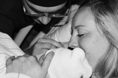 By this point, Marcus had to sit down next to me (he got a little queasy and doesn’t do well with this sort of thing), so he sat right next to my head and held my hand. My mom held my other leg for me. At 2:18 a.m., Blake was pretty close to making an entrance! Six big breathtaking pushes later, Blakeleigh Marie Oakes was born at 2:29 a.m. on July 3.