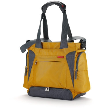 The Skip Hop Bento bag is, in a word, awesome. Its black and gray color scheme (my combo of choice) give it the look of a large handbag—no sign of diaper bag here! My husband even likes carrying it. The numerous pockets make it ideal for organization. The bag is of high quality—the material is sturdy and wears well. All zippers and snaps are strong and durable.